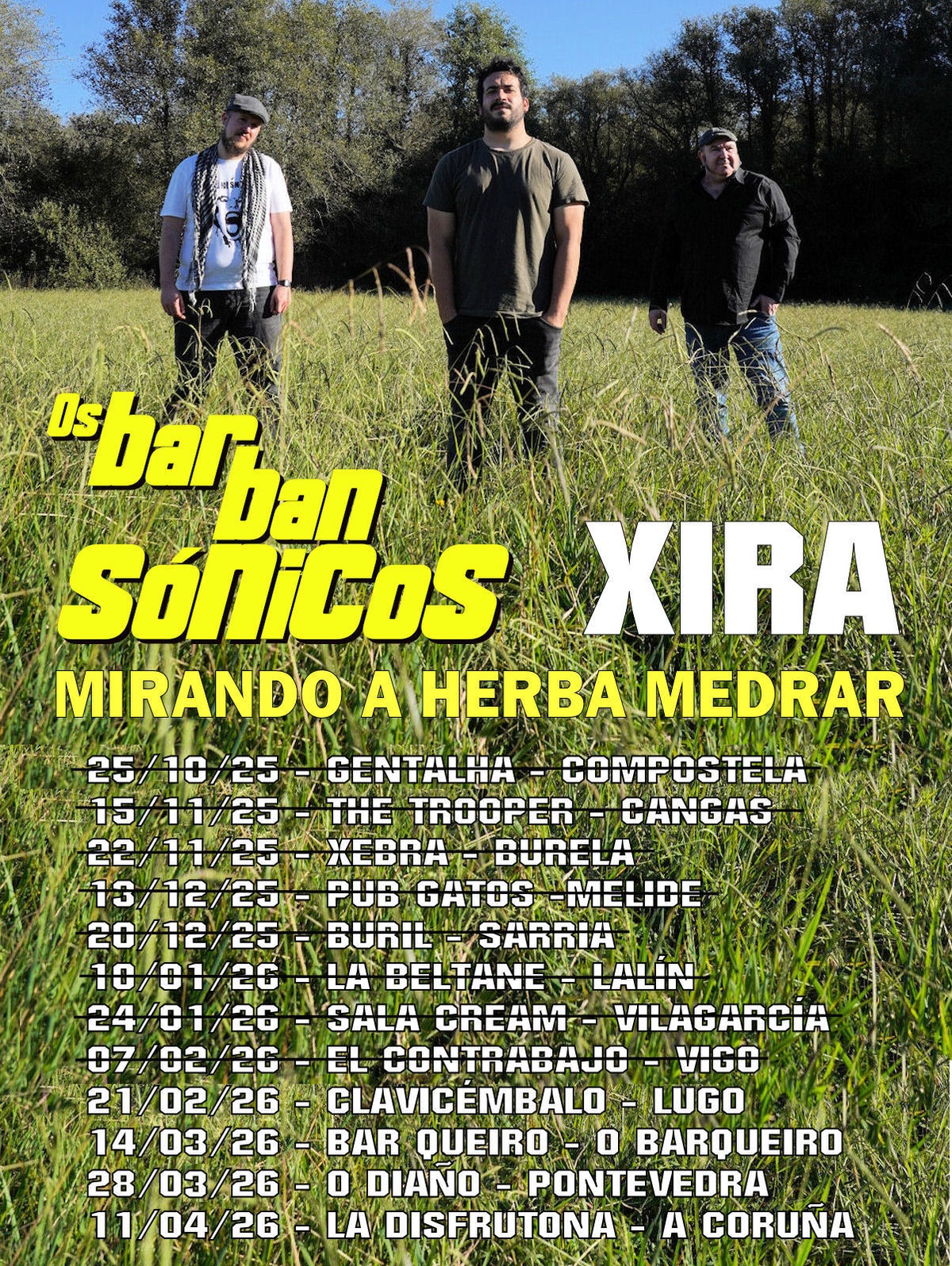 Recta final da xira de presentación do noso 3º álbum "Mirando a herba medrar" (https://open.spotify.com/.../album/7sRibRIFU1qxLWvT3yjwiA...) E despois O Bar Queiro, O Diaño e La Disfrutona del Orzán, O Barqueiro, Pontevedra e A Coruña. Vémonos aí